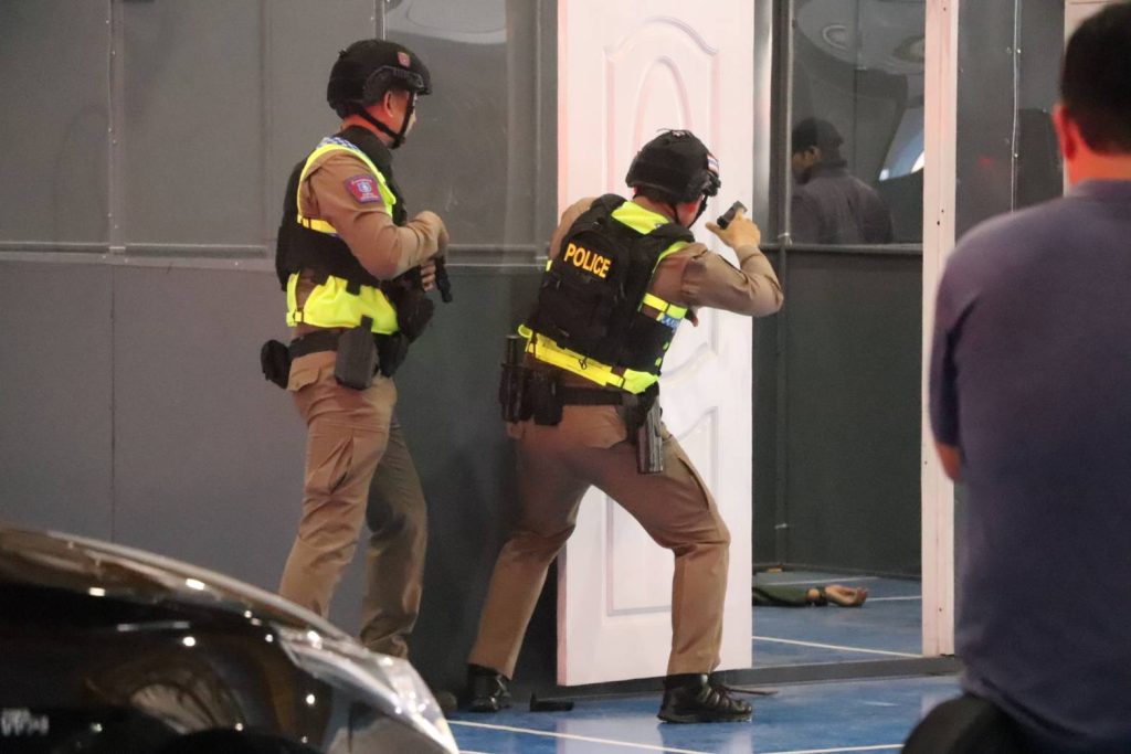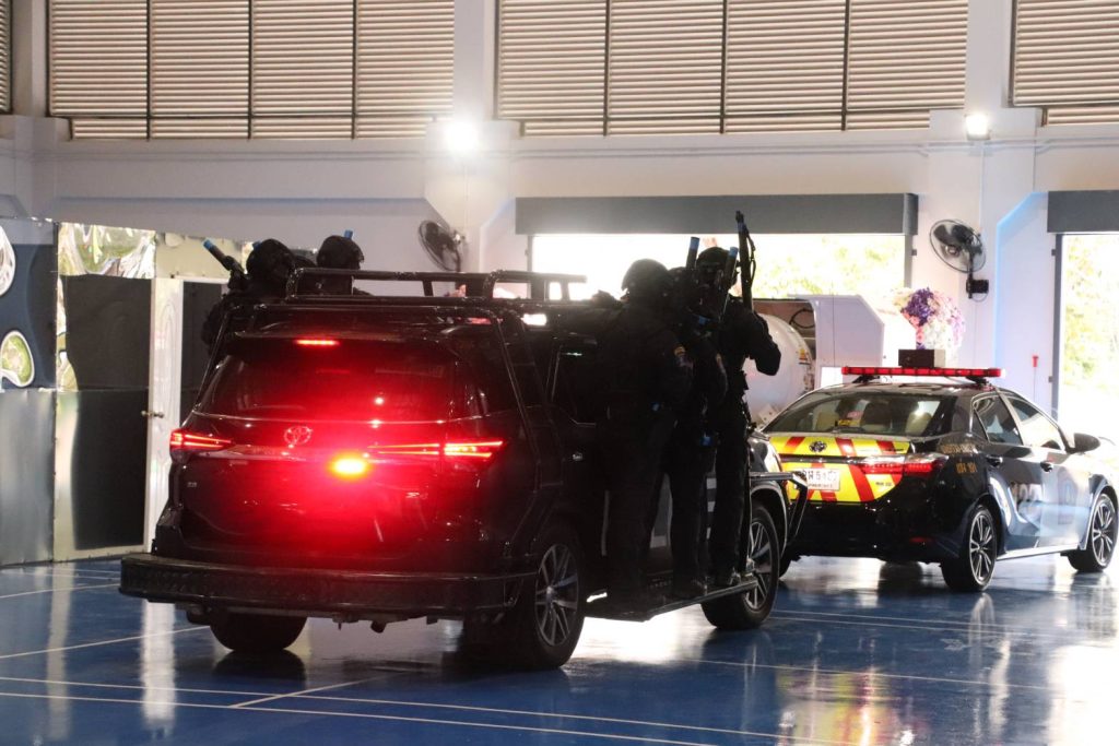 ตลอดจนนำหน่วยอรินทราช ชุดปฏิบัติการพิเศษและหน่วยเก็บกู้วัตถุระเบิด สุนัขตำรวจร่วมคลี่คลายสถานการณ์ด้วยจากนั้นได้ตรวจเยี่ยมกำลังพลการแสดงอาวุธยุทโธปกรณ์ ของหน่วยงานในสังกัด