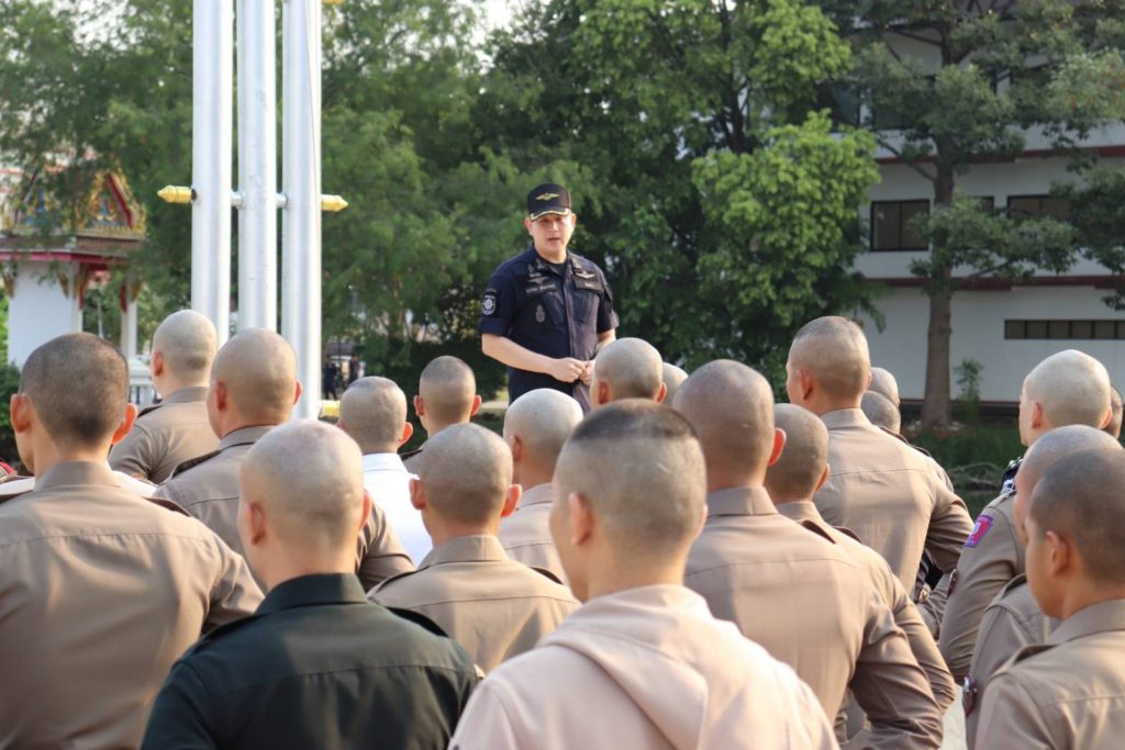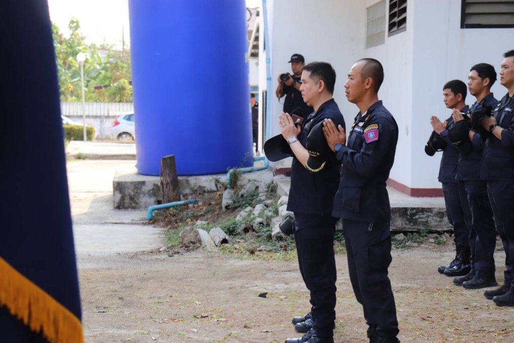 นำข้าราชการตำรวจ เจ้าหน้าที่ ป.ป.ส. คณะครูฝึกและนักเรียนหลักสูตรฯ ทำพิธีเปิด ฝากยศ และปฏิญาณตนเป็นนักเรียนหลักสูตร อินทรีย์ 19 รุ่นที่ 6