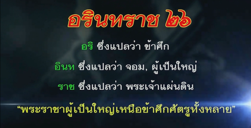 พระราชาผู้เป็นใหญ่เหนือข้าศึกศัดรูทั้งหลาย ส่วนเลข ๒๖ คือ ปีพุทธศักราช ๒๔๒๖ เป็นปีที่หน่วยก่อตั้งขึ้น